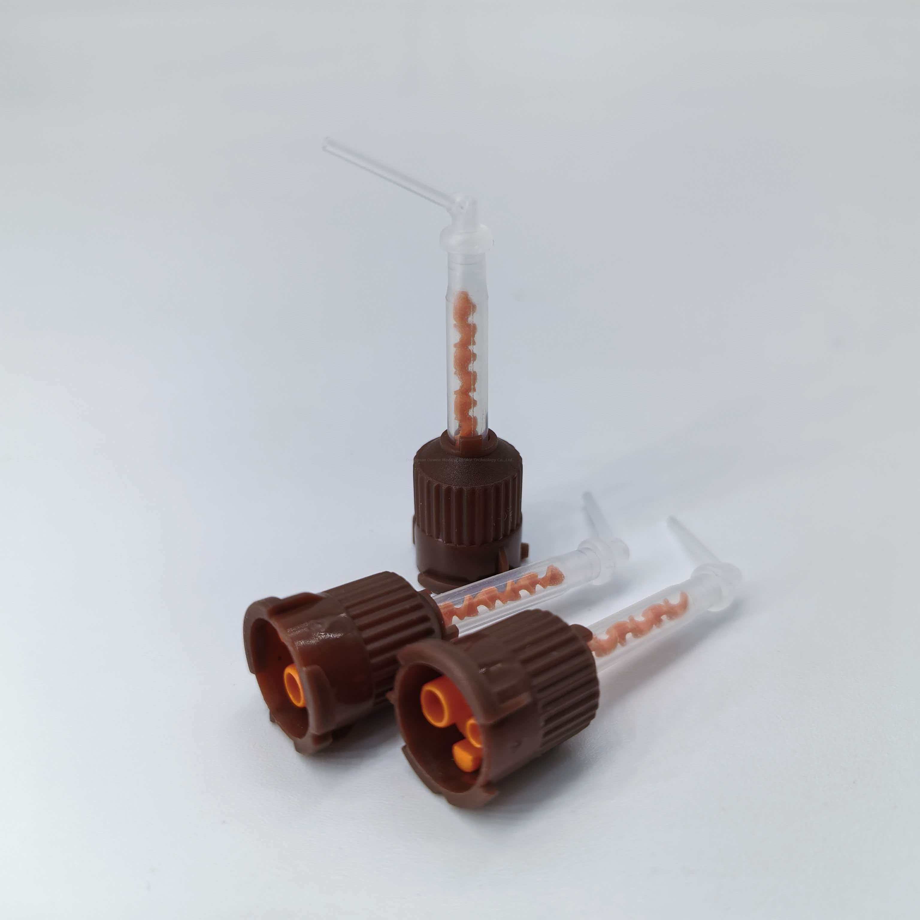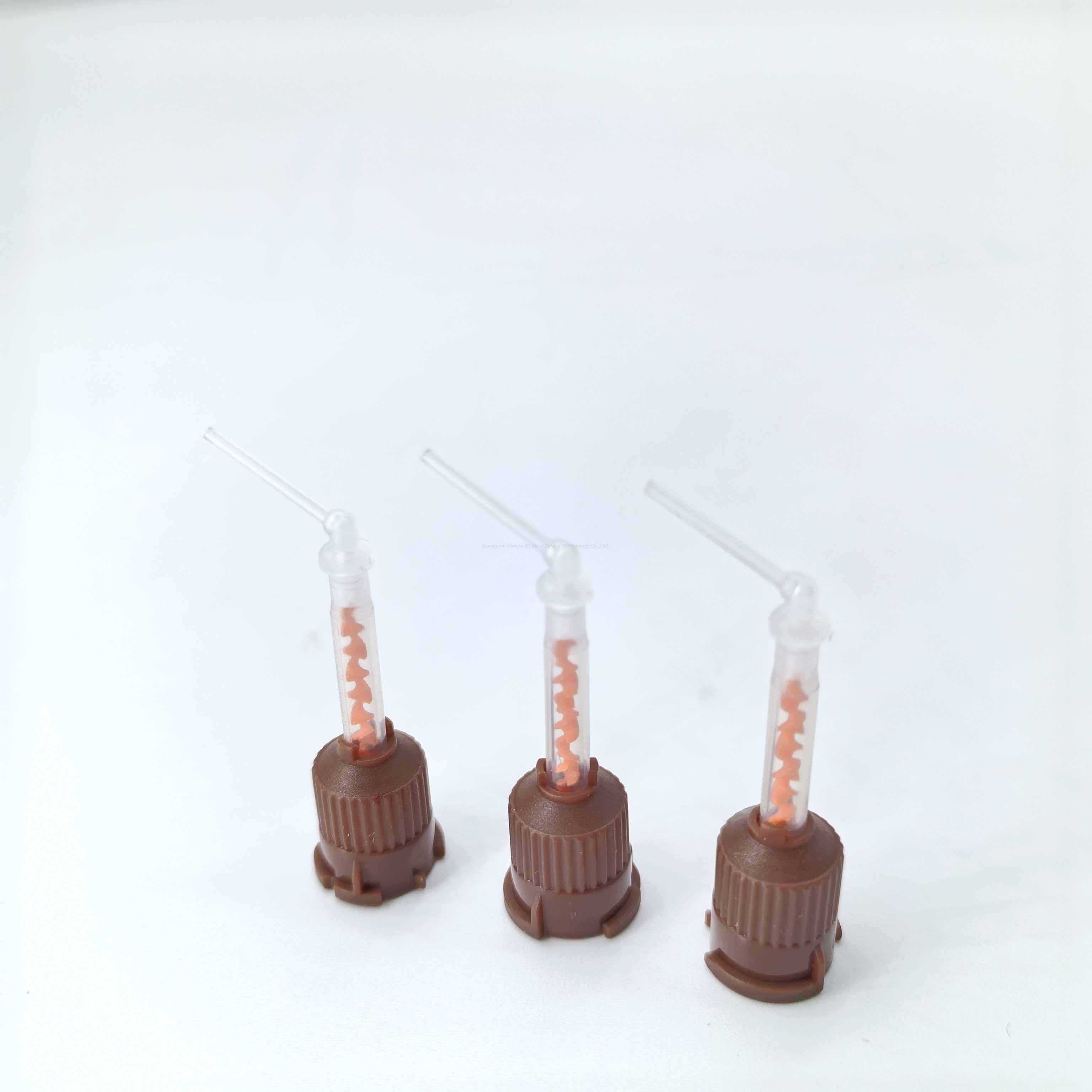 Le tube est fabriqué à partir de matériaux stériles de qualité médicale, résistant à la corrosion et aux fuites, et est compatible avec divers agents dentaires tels que les résines et les adhésifs. La conception légère et facile à tenir réduit les difficultés opérationnelles et l'application à usage unique élimine les risques d'infection croisée.