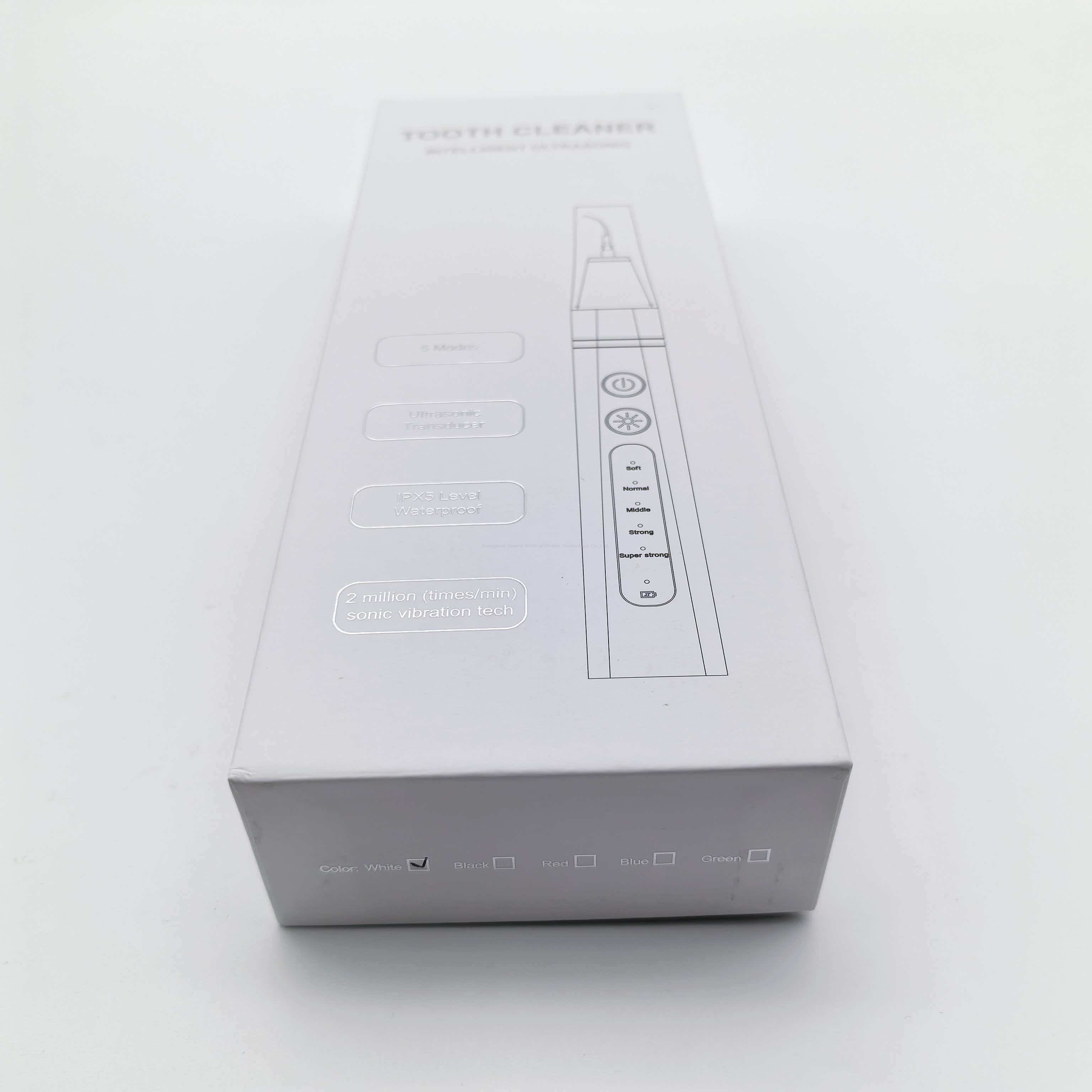 ce nettoyeur de dents à ultrasons utilise des vibrations ultrasoniques pour éliminer avec précision le tartre, la plaque dentaire et les taches de thé/tabac, nettoyant en profondeur entre les dents tout en étant doux et sans endommager l'émail des dents. Avec des modes allant de Soft à Super Strong, il s’adapte à différents niveaux de sensibilité dentaire. Il est doté d'une mise sous/hors tension à une touche et d'une commutation de mode, et est livré avec un éclairage LED intégré pour éclairer clairement la cavité buccale, permettant même aux débutants de trouver progressivement leur réglage le plus confortable. Équipé d'un port de chargement USB, il peut être utilisé pendant une période prolongée après une charge complète et est disponible dans une variété d'options de couleurs.