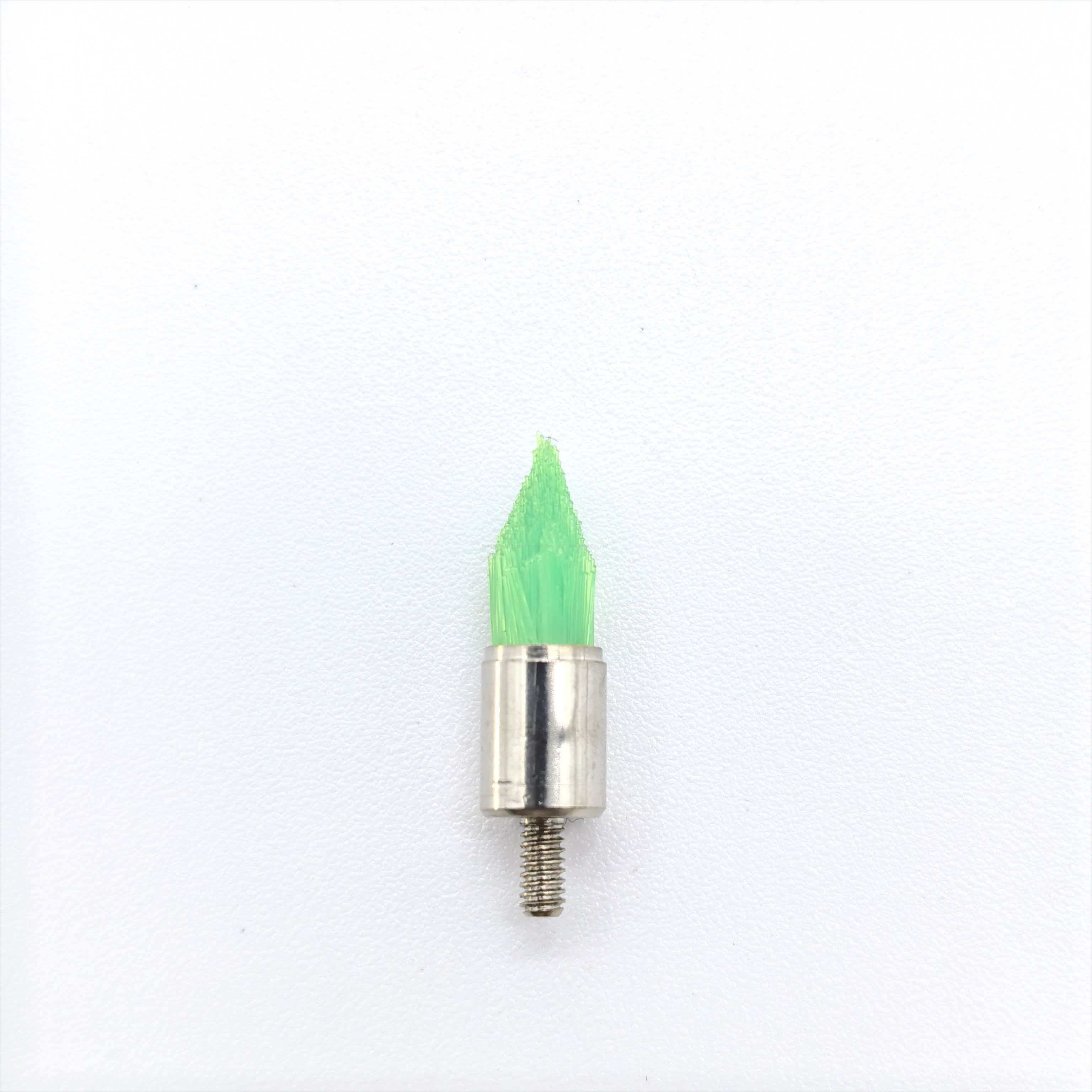spécialement conçu pour un polissage précis dans les zones buccales étroites, avec une structure de pointe filetée conique - l'extrémité pointue et fine peut atteindre des zones cachées telles que les espaces interdentaires, les sillons gingivaux et les bords de la prothèse. Le motif fileté augmente la zone de contact par friction et, lorsqu'il est combiné à la dureté modérée des poils en nylon de qualité médicale, il élimine avec précision la plaque dentaire, les résidus alimentaires et les débris de polissage sans rayer les tissus mous ou les surfaces des prothèses.